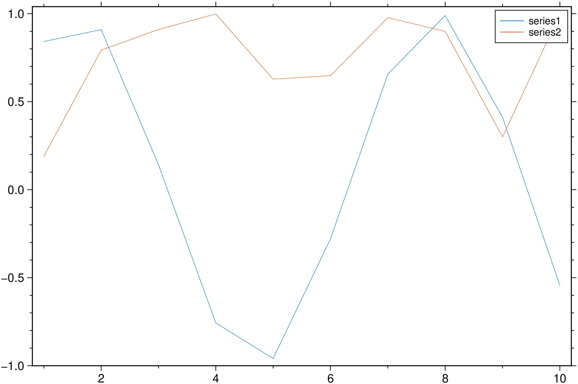 df = DataFrame(t = 1:10, series1 = sin.(1:10), series2=rand(10));