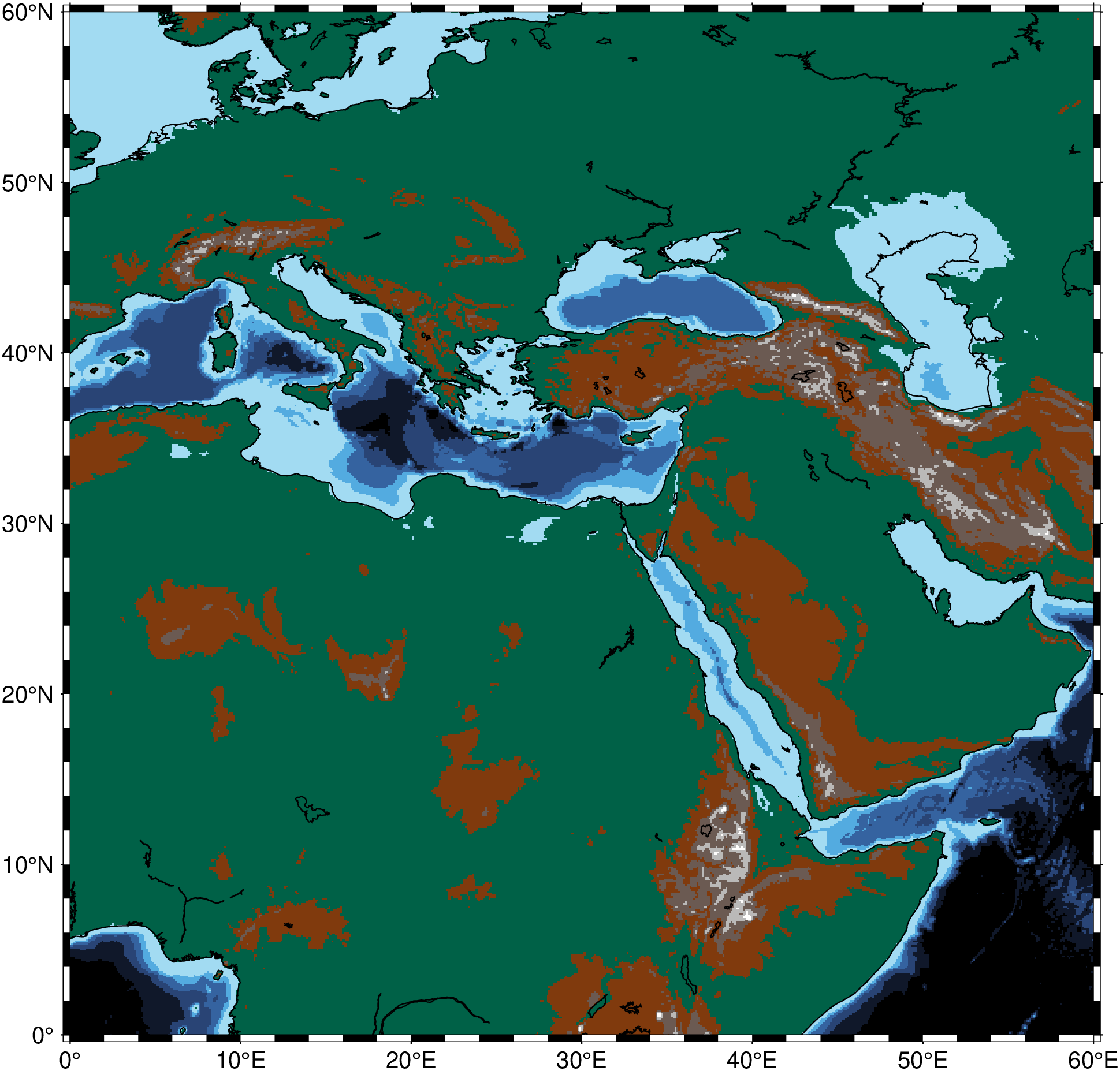 imshow("@earth_relief_06m_g", region=(0,60,0,60), coast=true)