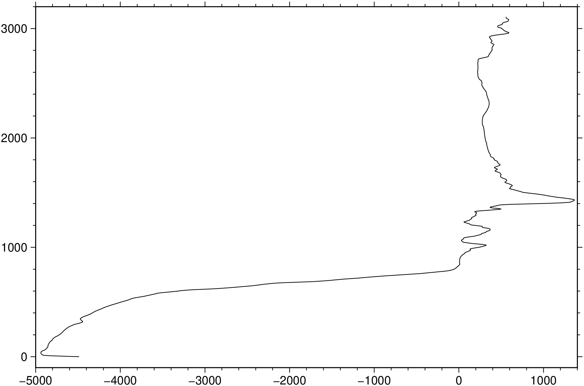 In concert with crossprofile we can save the (possibly resampled) original lines to the file fname [Default only saves/returns the cross-profiles]. The columns will be lon, lat, dist, azimuth, z1, z2, … (sampled value for each grid)