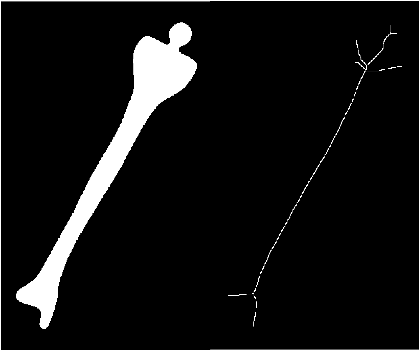 Reduces all objects in the 2-D binary image I to 1-pixel wide curved lines, without changing the essential structure of the image. This process, called skeletonization, extracts the centerline while preserving the topology.