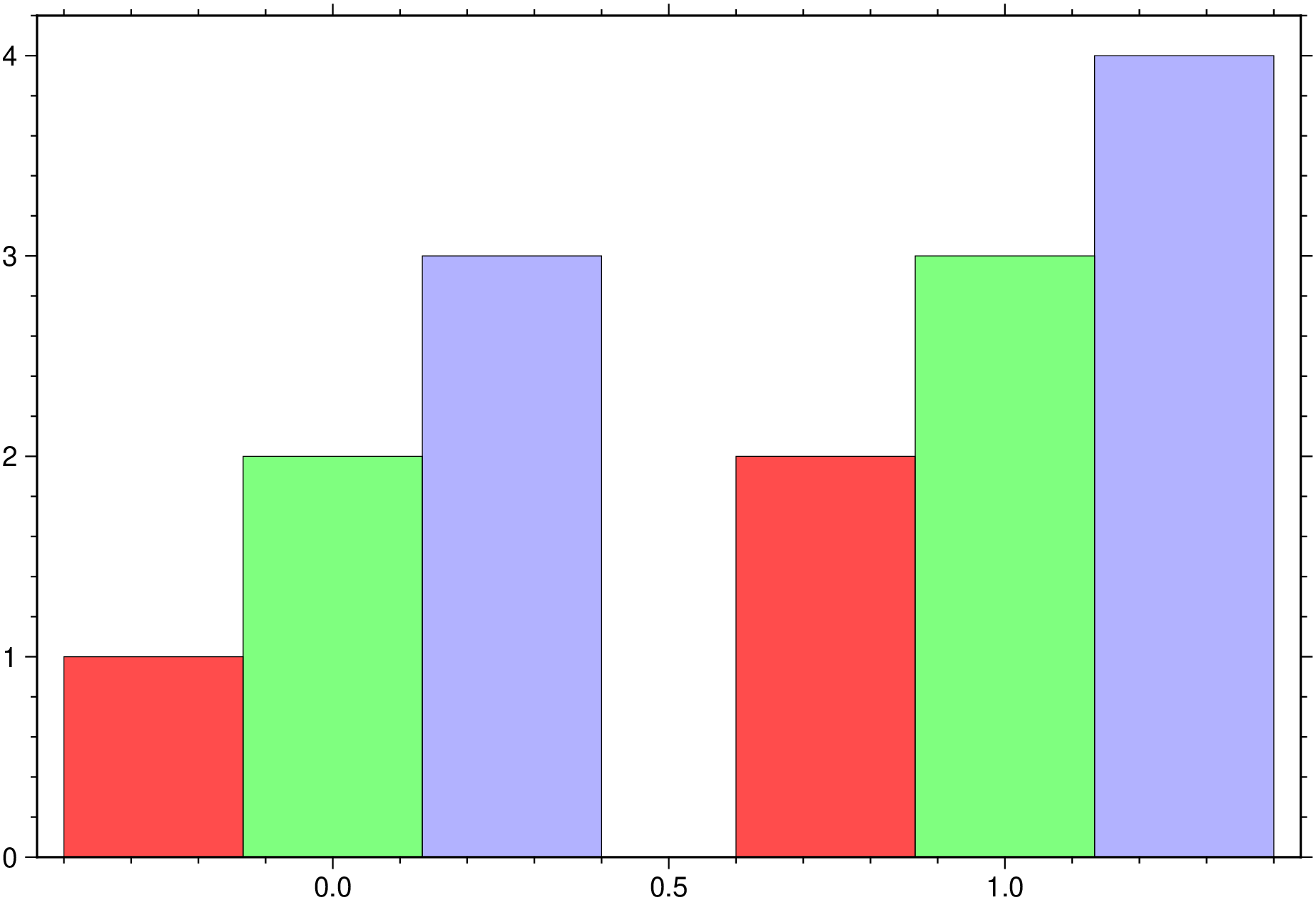 If input is a MxN array and N > 2 it will plot a bar-group with M groups and N-1 bars in each group (first column holds always the coordinates).