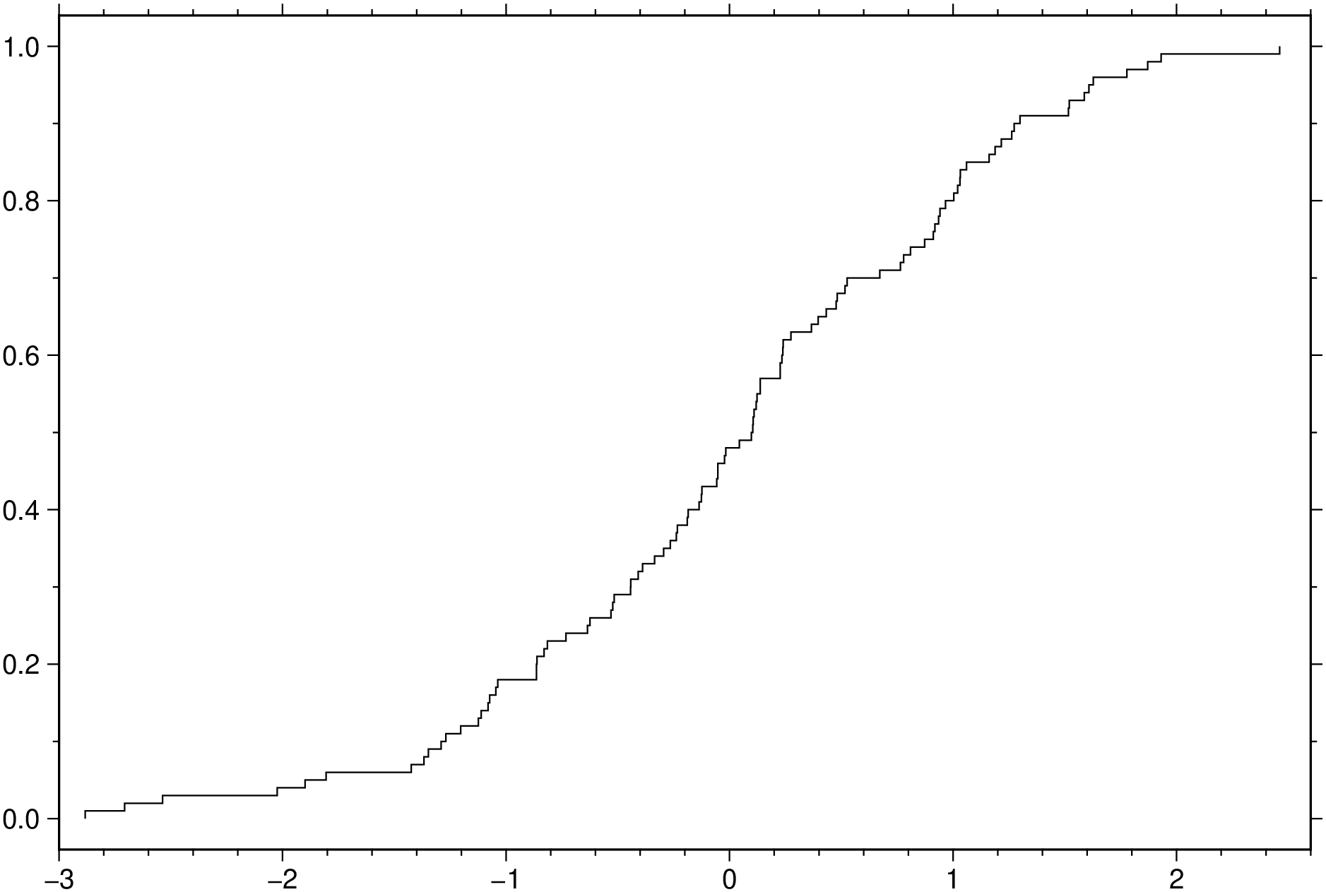 ecdfplot(x, …) plot the empirical cumulative distribution function (ECDF) of x.
