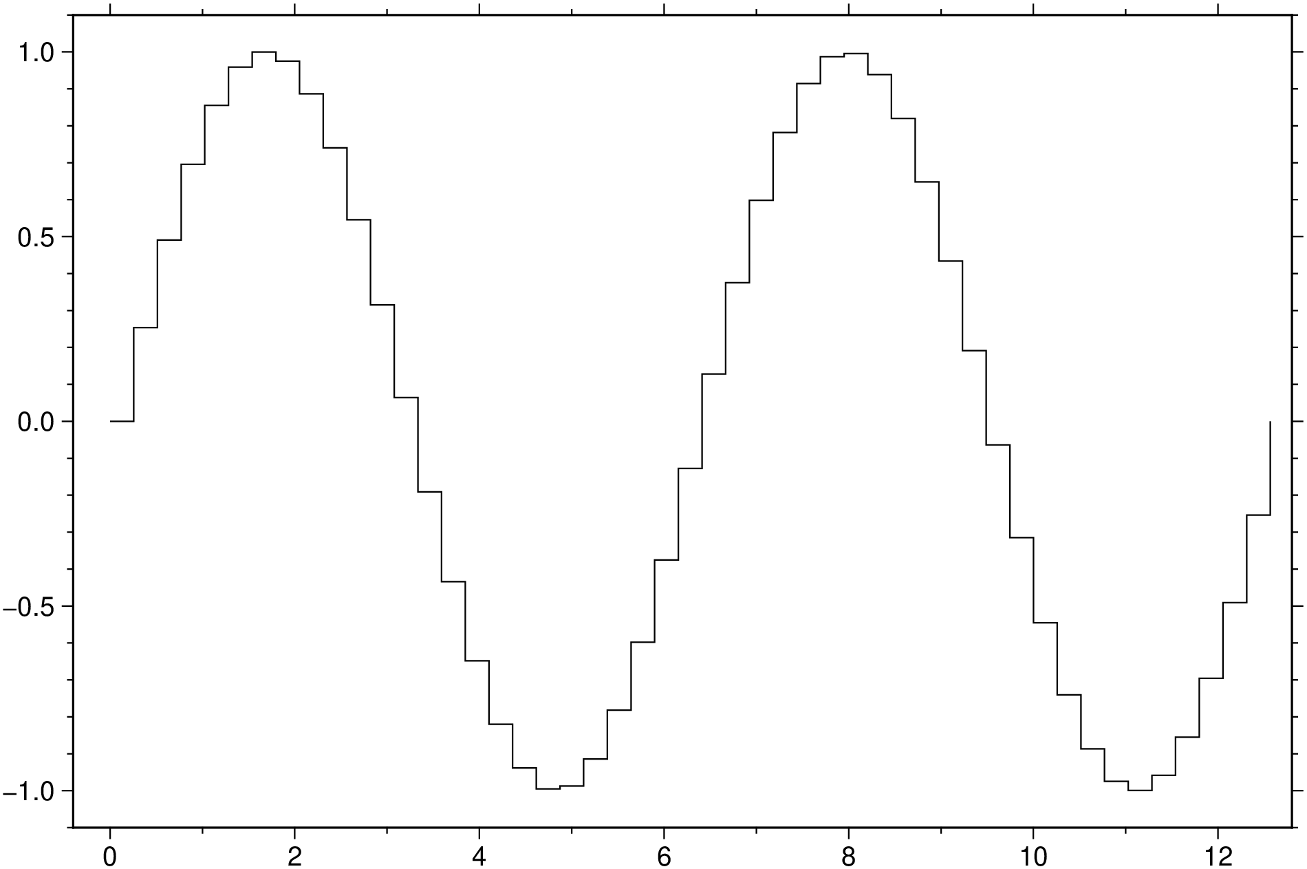 Reads (x,y) pairs and plot stairstep graph. The input can either be a file name of a file with at least two columns (x,y), but optionally more, a GMTdatset object with also two or more columns, or direct x,y inputs