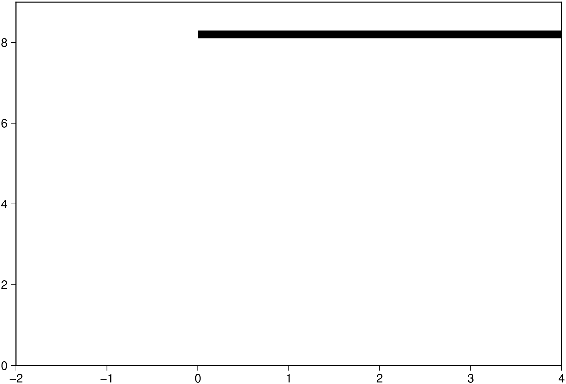 arrows([0 8.2 0 6], limits=(-2,4,0,9), arrow=(len=2,stop=1,shape=0.5,fill=:red),
