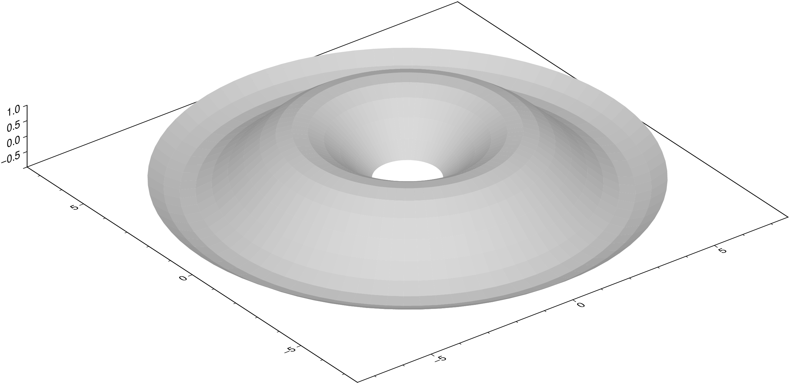 curve: A Mx3 matrix of points defining the curve to revolve. Each row is a point in 3D space.extent: The extent of the revolved curve in degrees. Default is 360 degrees. But a finer control is possible using the ang1 and ang2 arguments.