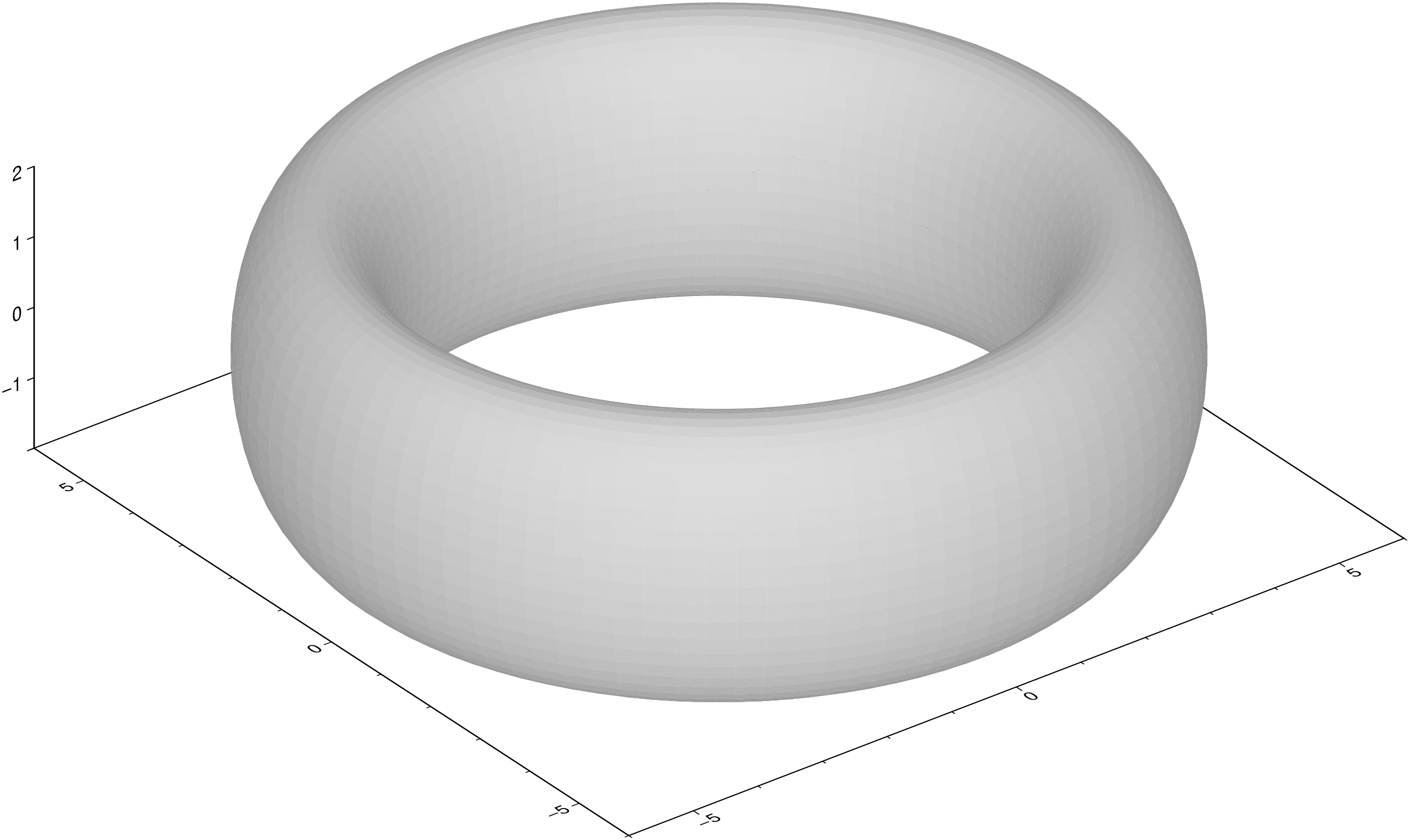 Create a torus with radius = 1, and two iterations. Create a torus using the default values.
