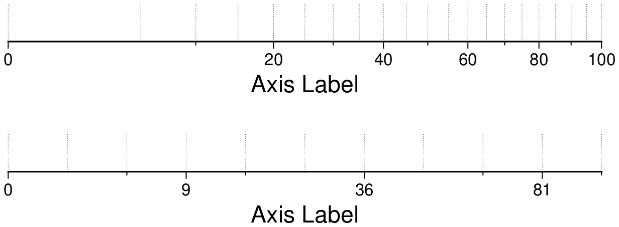 Normally, stride will be used to create equidistant (in the user’s unit) annotations or ticks, but because of the exponential nature of the axis, such annotations may converge on each other at one end of the axis. To avoid this problem, you can append p to stride, and the annotation interval is expected to be in transformed units, yet the annotation itself will be plotted as un-transformed units. E.g., if stride = 1 and power = 0.5 (i.e., sqrt), then equidistant annotations labeled 1, 4, 9, ... will appear.