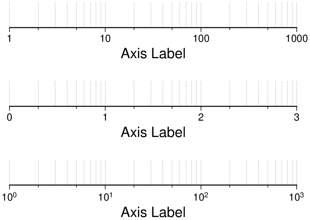 Due to the logarithmic nature of annotation spacings, the stride parameter takes on specific meanings. The following concerns are specific to log axes (see Figure Logarithmic projection axis):