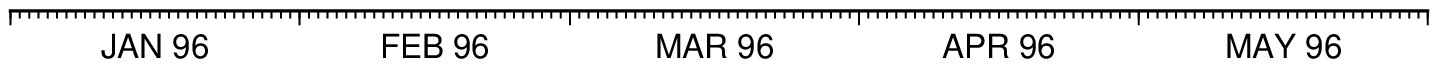 Our sixth example shows the first five months of 1996, and we have annotated each month with an abbreviated, upper case name and 2-digit year. Only the primary axes information is specified.