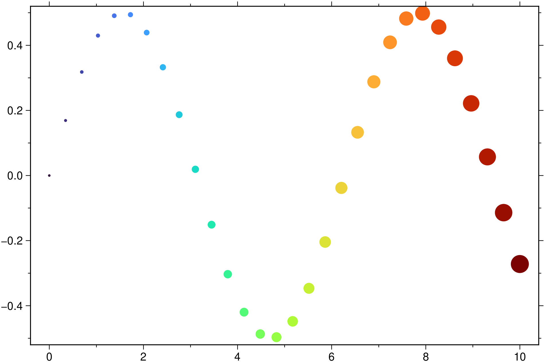 x = GMT.linspace(0, 2pi); y = cos.(2x)*0.9;