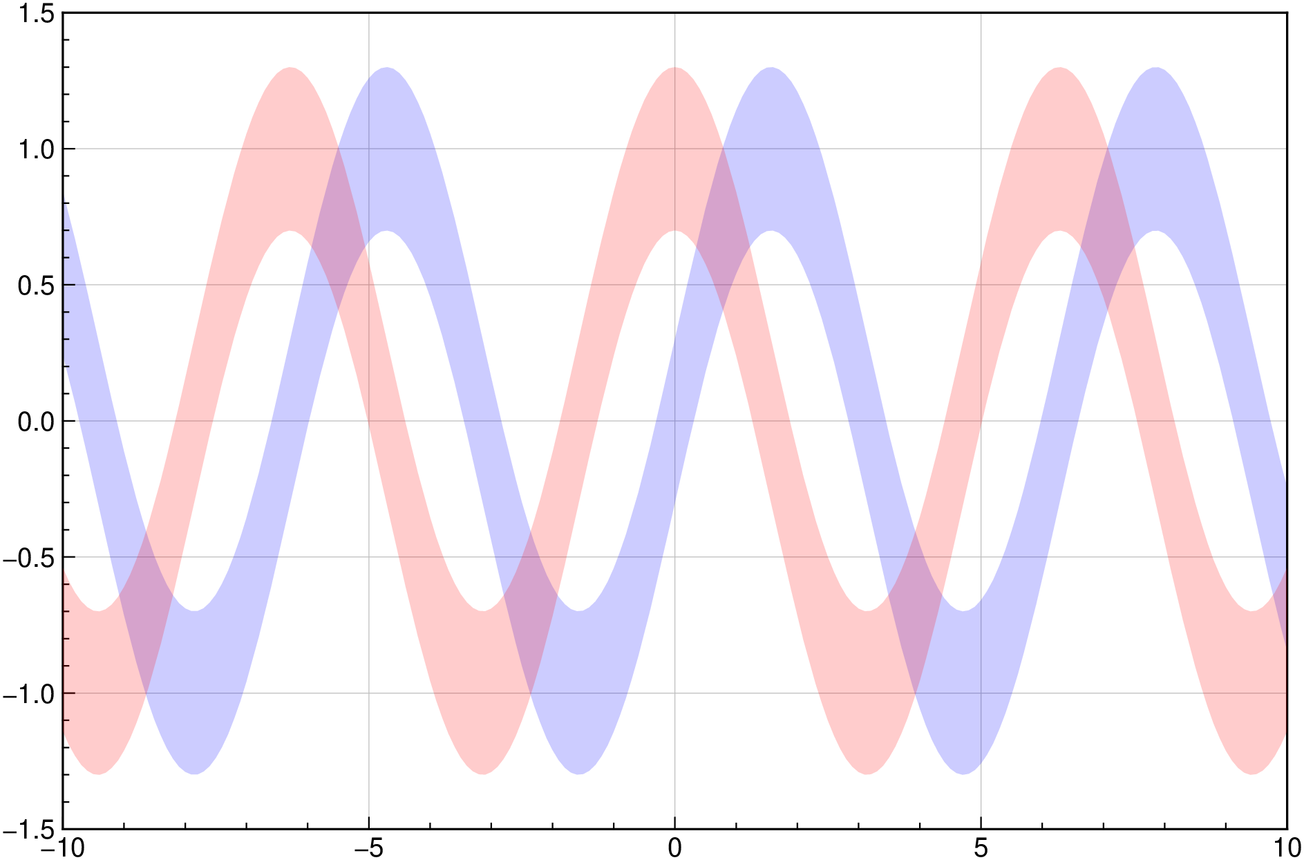 band(x, sin.(x)./x, width=0.1, fill="green@80", show=true)