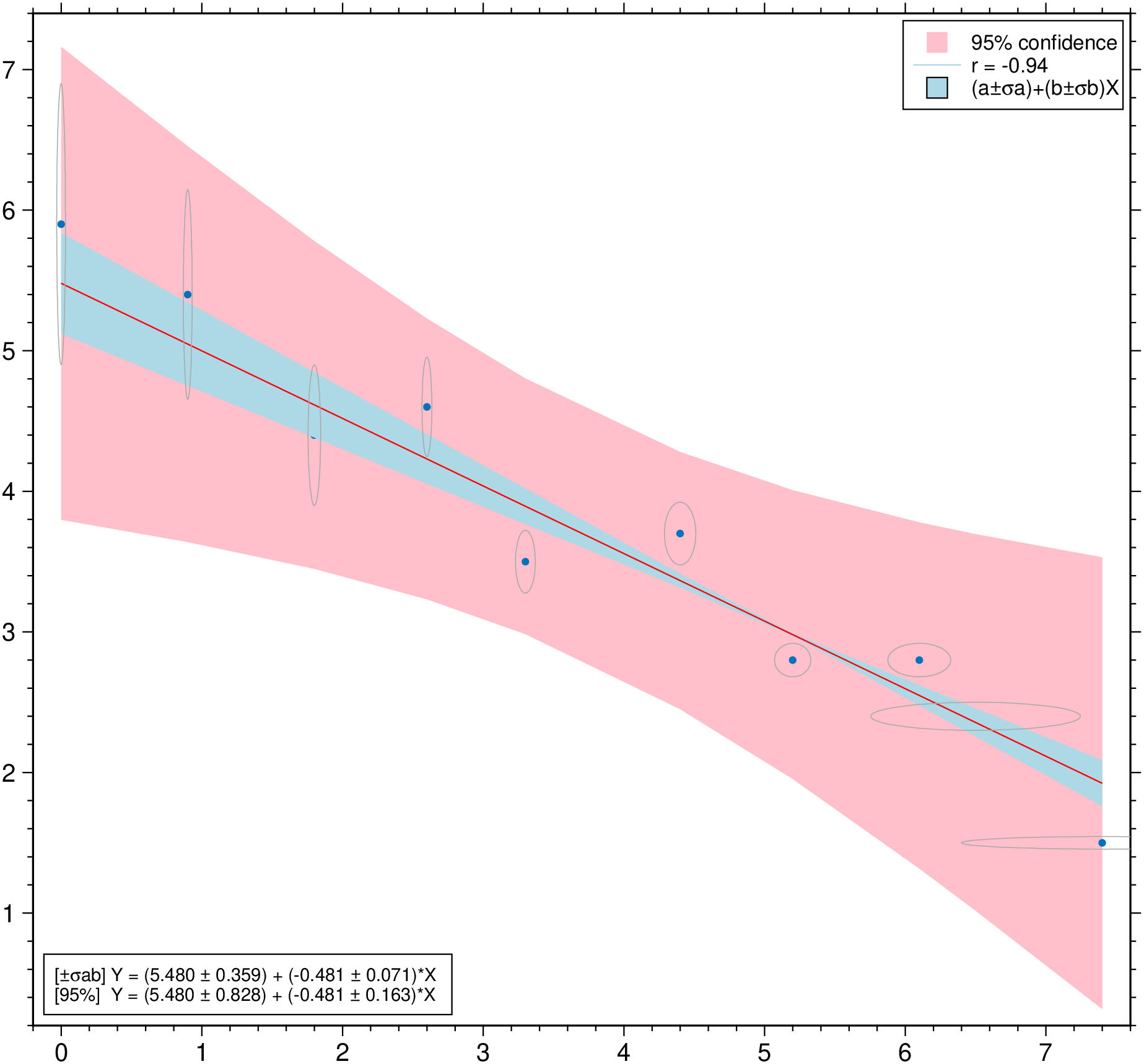 plot(D, linefit=true, band_ab=true, band_ci=true, ellipses=true, legend=true, show=1)