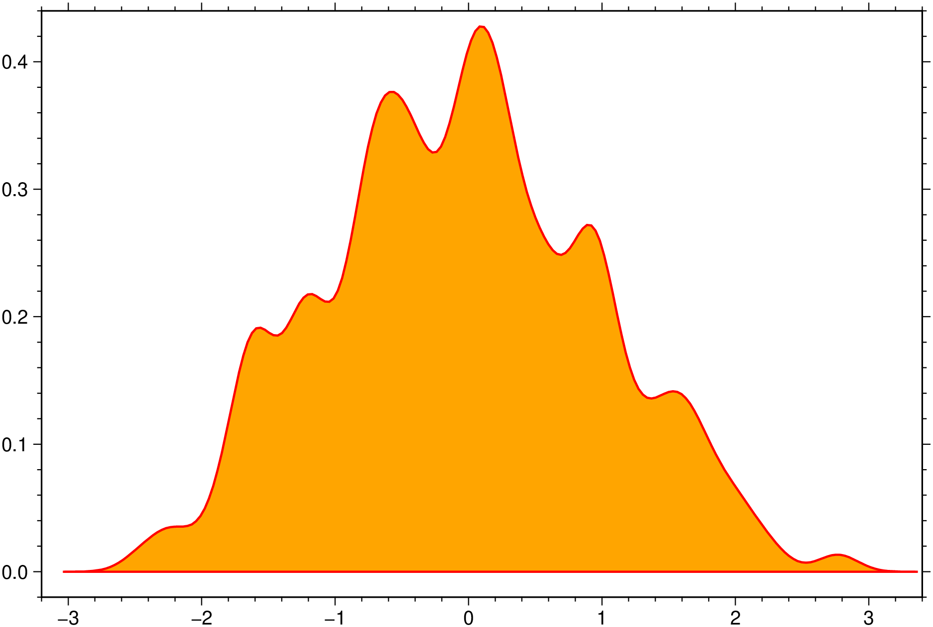 Expand the density profile with 4 x the set bandwidth, such that it decays to zero. By lowering the bandwidth we forcing the line to be less smoth.